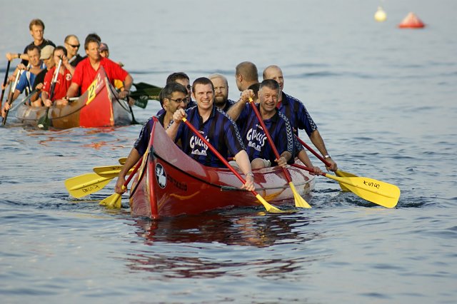 Für einmal bei hervorragenden Wetterbedingungen konnten die Rommanshorner Kanuten ihre Wettkämpfe durchführen. Da konnten auch die im Juni den Wellen zum Opfer gefallenen Langstrecken-Schweizermeisterschaften nachgeholt werden. Den grössten Aufmarsch erlebte traditionellerweise der Wettkampf im grossen Kanadier am Freitagabend. 25 Vereins-, Firmen- und Plausch-Mann- und Frauschaftenschaften versuchten über Vorlauf, Hoffnungslauf und Halbfinal den Final zu erreichen. Im Vordergrund stand bei vielen das fröhliche Miteinander. Zahlreiche Gruppen waren kostümiert, denn ein Hauptpreis wurde für die originellste Darbietung abgegeben. Da waren in diesem Jahr die "Aloa-Wyber" in ihren Baströcklein erfolgreich. Im sportlichen Wettkampf siegten wie schon im letzten Jahr die Mannschaft "Fun tastic" von der Kanuschule Bodensee. Im erstmals ausgetragenen Frauenfinal schwangen die "Hemigslose" obenaus. Die gute Stimmung am Seeufer fand eine Fortsetzung im prallgefüllten Festzelt.